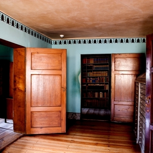На стенах: казеиновая краска. Двери: лазурь по дереву